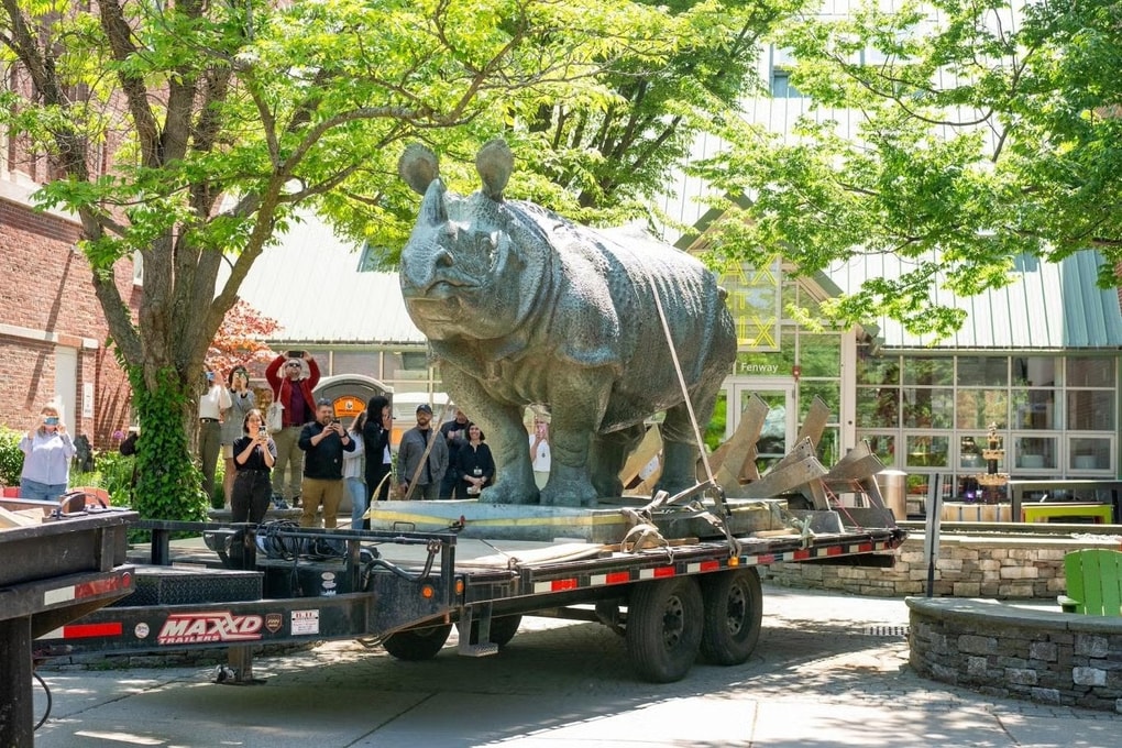 On a sunny morning in May, we wished Bess (aka Bessie), SMFA at Tufts’ beloved rhinoceros sculpture and unofficial mascot, bon voyage as she headed down to a fabrication shop on the East Providence waterfront for conservation work.